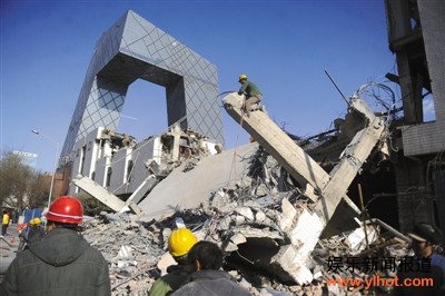【正文】12月23日,北京东三环央视大楼新址旁正在拆除的清华大学美术学院主楼发生施工事故。大楼部分墙体突然倒塌,砸中路边行驶的汽车。